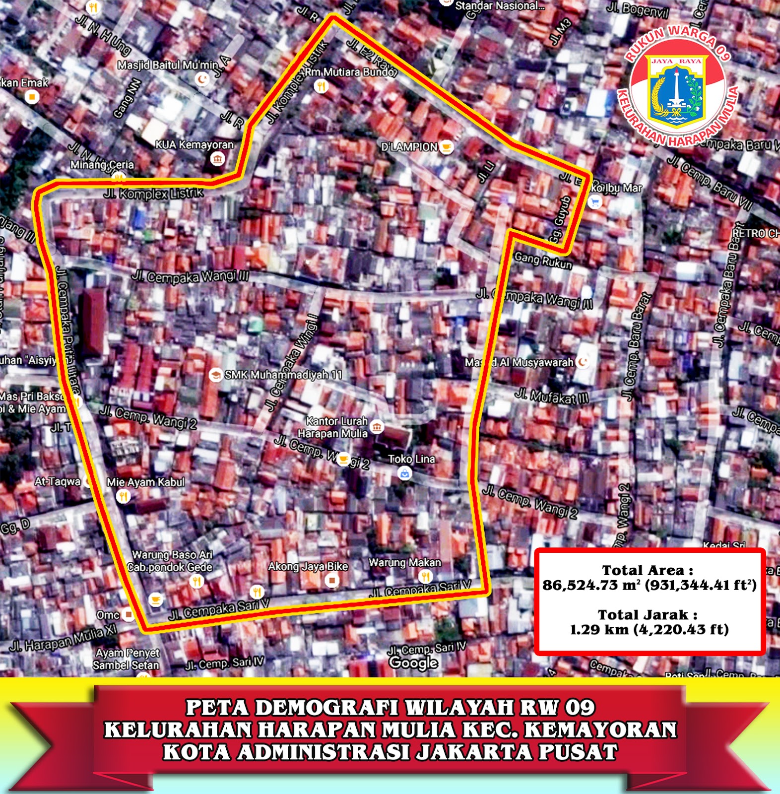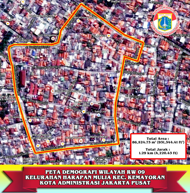 Struktur Wilayah RW 09 Kel. Harapan Mulya TOTAL AREA : 87.853,36 M2 TOTAL JARAK : 1,29 KM